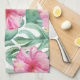 Tropical Hibiscus Flower Monstera Pattern Kitchen Towel
