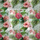Tropical hibiscus flowers and leaves, artistic watercolor painting foliage woven into an editable pattern that you can scale and even add a new background color to it!
