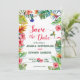This wedding save the date features watercolor tropical palm leaves, pink hibiscus, tropical florals and birds, and a colorful script font. This makes the perfect addition to your tropical beach luau or island wedding celebration. Easily add or delete the QR Code to the backside along with your wedding website for a personal touch.