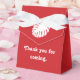 Give your guests, bridesmaids, groomsmen, or anyone else a special treat with these customizable favor boxes featuring a cherry red background with a white hibiscus flower and tropical leaf on the front, back, and flap of the box. Each of these sides also features some sample text that you can customize for your own summer or tropical-themed wedding or event. Be sure to check out the other products in the Tropical Hibiscus in Cherry set to create a truly coordinated look for your event.