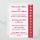 Bring touch of summer splendor to your event with this wedding invitation featuring a bright raspberry pink border on the right side, decorated with a pattern of hibiscus flowers and tropical leaves that are printed in real foil. The left side of the card has plenty of space for all of the details for your special event with some sample text in place that can be customized to fit your needs. A large hibiscus flower and tropical leaf in bright pink finishes things off on the back to create a dreamy final note. This invitation will match with any other Tropical Hibiscus in Raspberry product so that you can easily make your event as coordinated as you desire.