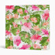 Beautiful green & pink tropical leaves & flowers, seamless repeat pattern