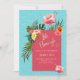 Set the tone for your party with this vibrant, tropical invitation. Featuring lovely azur blue and striking pink with hints of gold you can customize it with your details. Also available as a download.