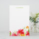 Personalized custom stationery with colorful floral illustration - bright red and orange tropical hibiscus flowers and green leaves.
