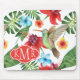 Birds | Watercolor seamless pattern with exotic flower, palm leaves and hummingbird on white background. Hand painted tropical texture. © and ® Bigstock® - All Rights Reserved.