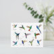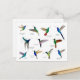 Postcard for hummingbird lovers featuring several hand-painted species of tropical hummingbirds such as Velvet-purple Coronet Hummingbirds, blue-throated Starfrontlet, White-necked Jacobin, Golden-tailed Sapphire, Dusky Starfrontlet, and Black-bellied Hummingbirds. Images taken from my original watercolor paintings.