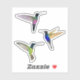 Beautiful tropical hummingbird stickers featuring a Blue-throated Starfrontlet, a Glittering Starfrontlet and a Coronet Hummingbird. All images are taken from original watercolor paintings.