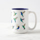 Colorful mug for hummingbird lovers featuring several species of tropical hummingbirds, such as a Black-throated Mango Hummingbird, Fiery-throated Hummingbird, Blue-chinned Sapphire, Golden-tailed Sapphire, Coronet and Swallow-tailed Hummingbirds. Images taken from original watercolor paintings by Christiane Dobbins.