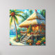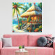 Tropical Hut Christmas Palm Tree Beach Lights Canvas Print