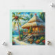 Tropical Hut Holiday – Palm Tree Lights on Beach Card