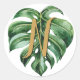 Tropical watercolor leaf sticker design features a monstera leaf and can be customized with your initial. We love how these round stickers look when used to seal up invitation envelopes.