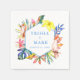 Beautiful tropical flower and parrot design wedding napkins that are perfect for your beach destination wedding. Customize with the name of the bride and groom and wedding date.