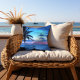 Tropical Island Beach Ocean Pink Blue Sunset Photo Throw Pillow