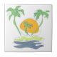 Tropical island beach scenery. Outline palm tree Ceramic Tile
