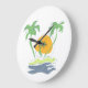 Tropical island beach scenery. Outline palm tree Large Clock