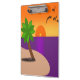 TROPICAL ISLAND WITH PALM TREE, SUNSET AND BIRDS