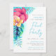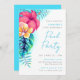 Tropical Island Flowers Pool Party Birthday Aqua Invitation
