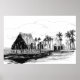 Tropical Island Huts Palm Trees Totem Poles Poster