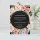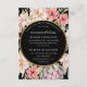 Tropical pastel florals plumerias and artichoke with faux gold circular border (optional). All text is customizable, as well as the backer color.