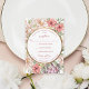 Tropical pastel florals plumerias and artichoke with faux gold circular border (optional). All text is customizable, as well as the backer color.