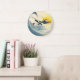 Tropical island, wave, surfer sunset. large clock