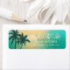 The thirst-quenching colors of teal, butter yellow and sea green give the pieces in this matching design set some of it's irresistible appeal... the beautiful island palm trees, palm fronds, delicate birds in the sky and giant sunrise over sparkling water easily provide the rest. This return address label features optional text of 'Bride-to-Be" with a template to add your name and address. These tropical labels are perfect for summer, beach and tropical destination weddings. Search ID581 to see the matching products and other color options for this design.