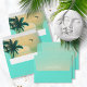 The thirst-quenching colors of teal, butter yellow and sea green give the pieces in this mix 'n match design set some of it's irresistible appeal... the beautiful island palm trees, palm fronds, delicate birds in the sky and giant sunrise over sparkling water easily provide the rest. The wedding envelopes shown here features all of the above as well as a template to add your names and return address. Search ID581 to see the matching products and other color options for this design.