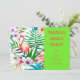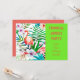 A colourful vibrant invitation suitable for a jungle themed or tropical island themed party. This design features a pink flamingo with palms, hibiscus and jungle plant foliage. Text and lime green background colour is fully customisable.