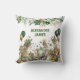This cute pillow features a variety of wild animals, including lions, tigers, zebras, and elephants, surrounded by lush jungle tropical leaves and colorful balloons in shades of green and gold.