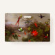 Badge featuring Martin Johnson Heade’s oil painting Tropical Landscape with Ten Hummingbirds (1870). Ten beautiful hummingbirds fly and perch around stunning passion flowers. A thoughtful gift for hummingbird lovers and American art enthusiasts!