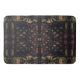 Exotic and dark, with natural colors and a slight flavor of the Orient, the beautiful pattern on this Bath Mat by ZoeSPEAK was made from Zoe’s original photograph of wrought iron latticework and tropical print fabric. Palm fronds and other tropical leaves, in shades of pale greens, terracotta and beige, rest gracefully on a black background behind the latticework.