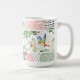 Lighten up your mornings with this pretty tropical design of tropical leaves colorful birds on this coffee mug.