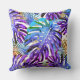 Tropical Leaf Pattern Purple Blue Gold Glitter Throw Pillow