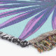 A quality printed throw has its advantages. This is a much finer weave throw than its loopier cousins, and though lighter, it is worth the investment for custom room accessorizing. The back is much prettier than the typical brown, and the fringe on the long sides very vivid, the selvage nicely done. Before photographing, I washed the throw in cold water, delicate, with a thicker woven throw the same size. On tumble dry low, this throw was dry in half the time as the other. This is a very practical quality if you use throws for furniture covers or to wrap up in frequently. The sleekness of the fabric makes it a great layer for accenting or protecting without the feeling of sitting on too much stuff. Perfect for napping or when you feel a light chill coming on. The color printing is beautiful and on this fabric, matched the design and color of my Photoshop image. This is an advantage for blending room fabrics and colors. The fringe on the short sides prints the colors from the design image and therefore varies from the side fringe. I streaked a white fractal line through the plaid pattern to give the illusion of weaving. This printed as crisp as an illusory thread, and put some white in the short side fringe, showing another advantage of print vs loomed- for artistic purposes, line lines, detail, and color integrity can be planned and preserved. My loomed throws have color limitations and more of a needlepoint texture. Print throws reproduce an exact image. The throw felt a little stiff straight out of the package, but this went away in the first delicate wash. Of course I searched the wash water for ink or bleeding and there was none.