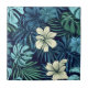 Tropical Leaves and Flowers Blue Green Ceramic Tile