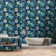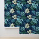 Tropical Leaves and Flowers Blue Green Wallpaper