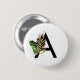Tropical Leaves Faux Gold Foil Letter A Monogram Pin Button | Boho monogram button featuring watercolor tropical leaves with faux gold foil accent. This tropical button is perfect for summer. This design is available in other items.