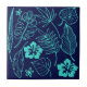 Tropical Leaves Floral Navy Turquoise Ceramic Tile