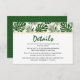 Tropical leaves green and gold wedding details insert card. A pretty design that displays leaves of Split Leaf Philodendron (Monstera deliciosa) or Swiss Cheese Plant and palm leaves in green with gold outline. The back is covered with a gold polka dot pattern on dark green. Choose it for your tropical coastal beach or destination wedding.