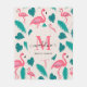 Tropical Leaves Hot Pink Flamingo Modern Monogram Fleece Blanket