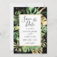 Tropical Leaves Modern Black & Gold Frame Save The Date