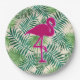 Tropical Leaves Pattern and Pink Flamingo Paper Plates