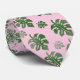 Tropical Leaves Pattern Green on Pink Neck Tie