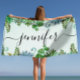 Introducing the Tropical Leaves Personalized Name Beach Towel! This beautiful towel is perfect for making a statement on the beach or at the pool. Add a touch of elegance to your summer with this personalized name beach towel. This towel features a tropical background with your personalized name. This towel is perfect for the summertime or for vacations. It's also a great gift for someone who loves the tropics. Order yours today!