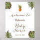 Tropical Leaves Pineapple Baby Shower Sign Poster.