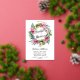 Beautiful watercolor pink floral hibiscus Bridal Shower wreath design with lush tropical greenery, multiple loop pink bow and real gold foil accents. The theme is continued on back with a top and bottom floral and tropical greenery swag.