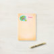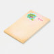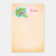Large sized sticky notes with a cute illustration of a green tropical lizard surrounded by leaves and flowers on a turquoise blue color. The background is a light beige color.