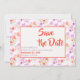 Announce your special day in style with this classy tropical botanical design in trendy mango orange and lavender that features a pretty pattern of soft watercolor flowers and stylish lettering. It is easy to personalize and the post card format makes it an economical choice for weddings on a budget. #mango #orange #floral #savethedate