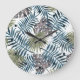 Tropical Mauve Green Palm Leaves Watercolor Art Large Clock