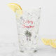 Tropical Beach Merry Christmas drinking glass, with a palm trees illustration and script typography. With customizable lettering, you add your own information. A festive addition to your holiday party or celebration.
